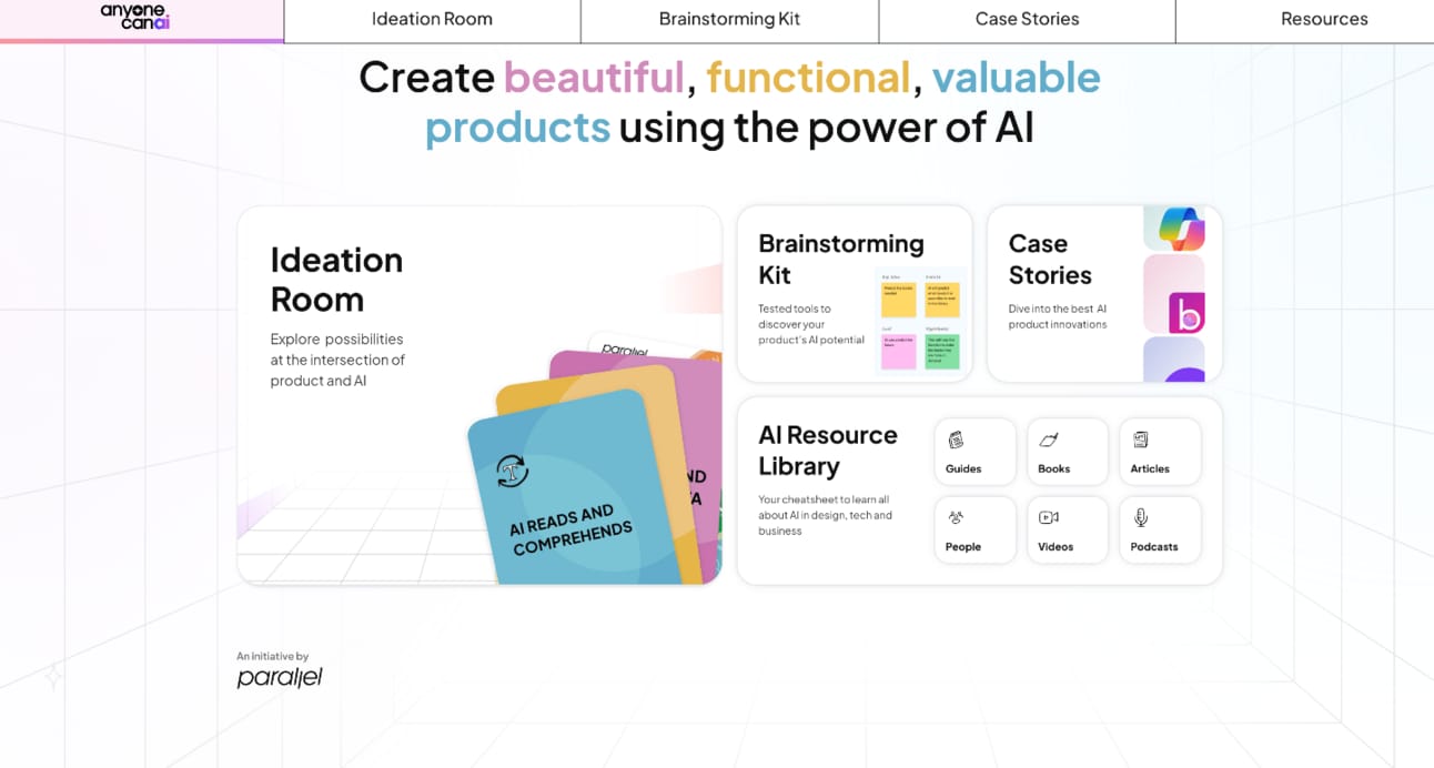 AnyoneCanAI by Parallel is a platform designed to help individuals and teams create valuable products using AI.