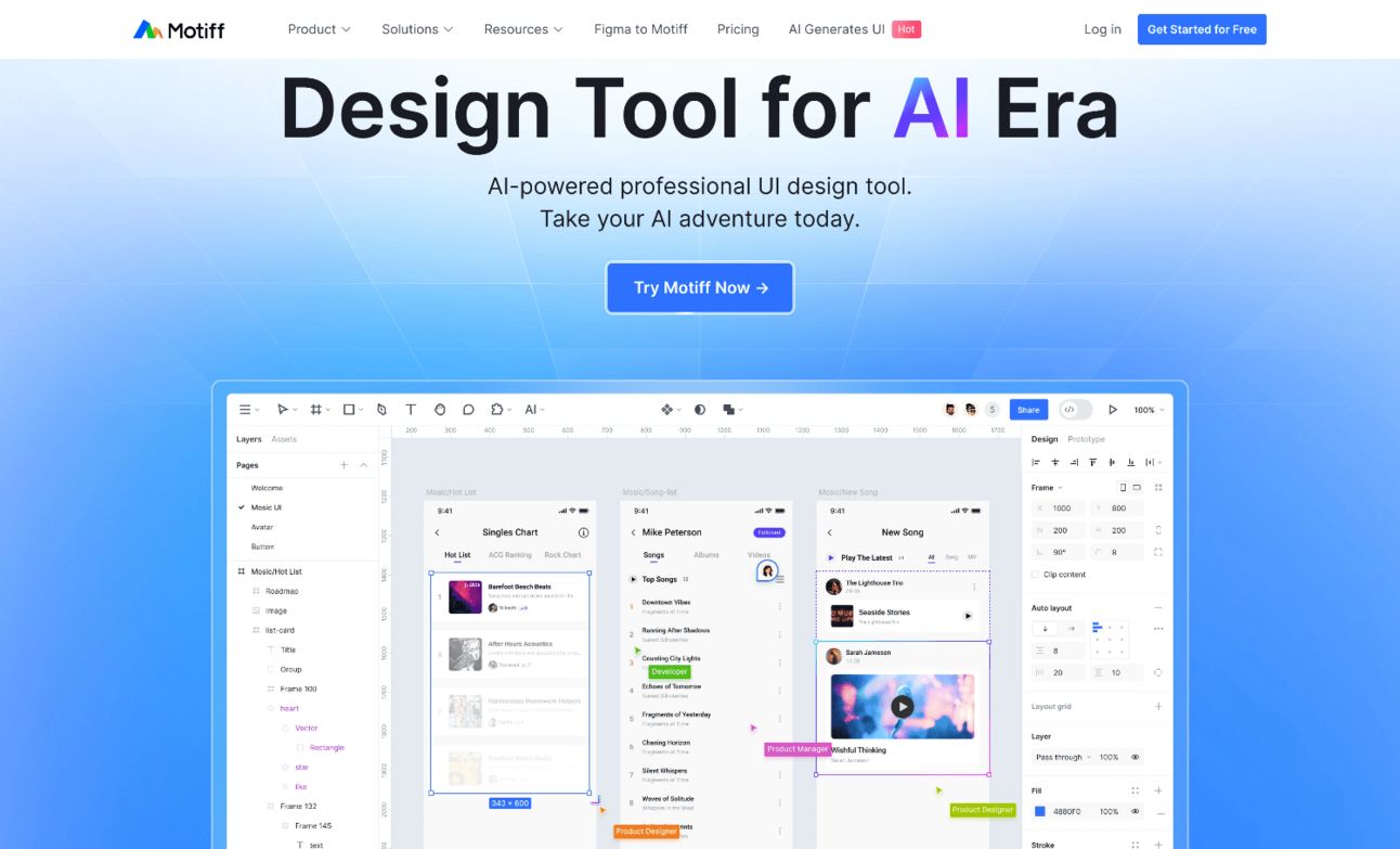 Motiff is an AI-powered professional interface design tool tailored for modern UI and UX designers. It integrates advanced AI features to enhance design efficiency and collaboration across teams.